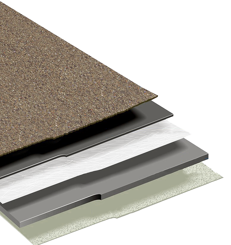 Стеклохолст, армирующий два слоя битума и делающий черепицу прочной на разрыв и растяжение. Защищает от повреждений во время ветра и не даёт битуму возможность растекаться при высоких температурах