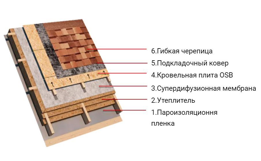 это многослойная конструкция, от которой зависит целостность и функциональность кровли. Такая конструкция может быть двух видов — для утеплённой и неутеплённой крыши. В зависимости от этого, она обладает разной структурой
